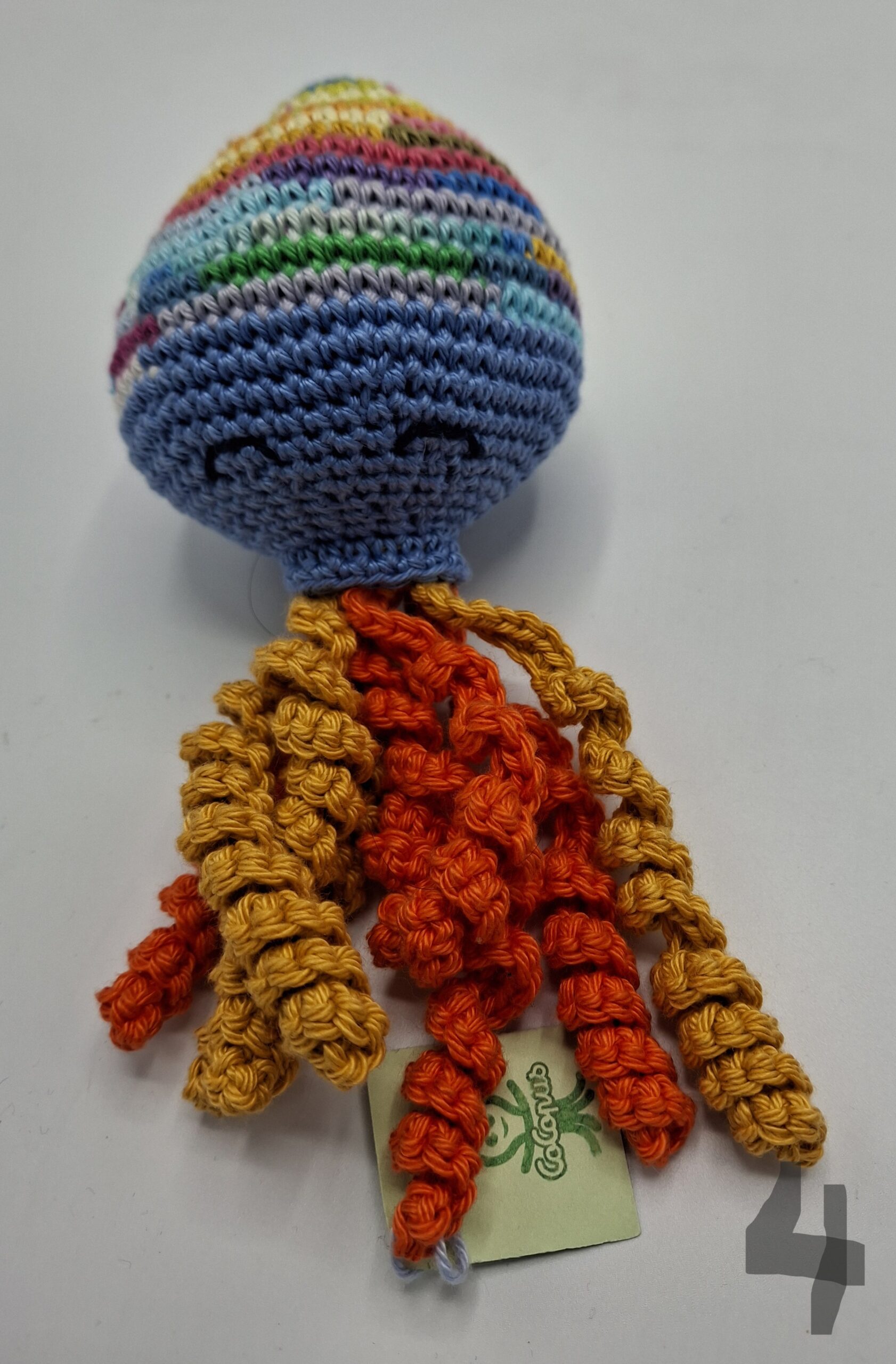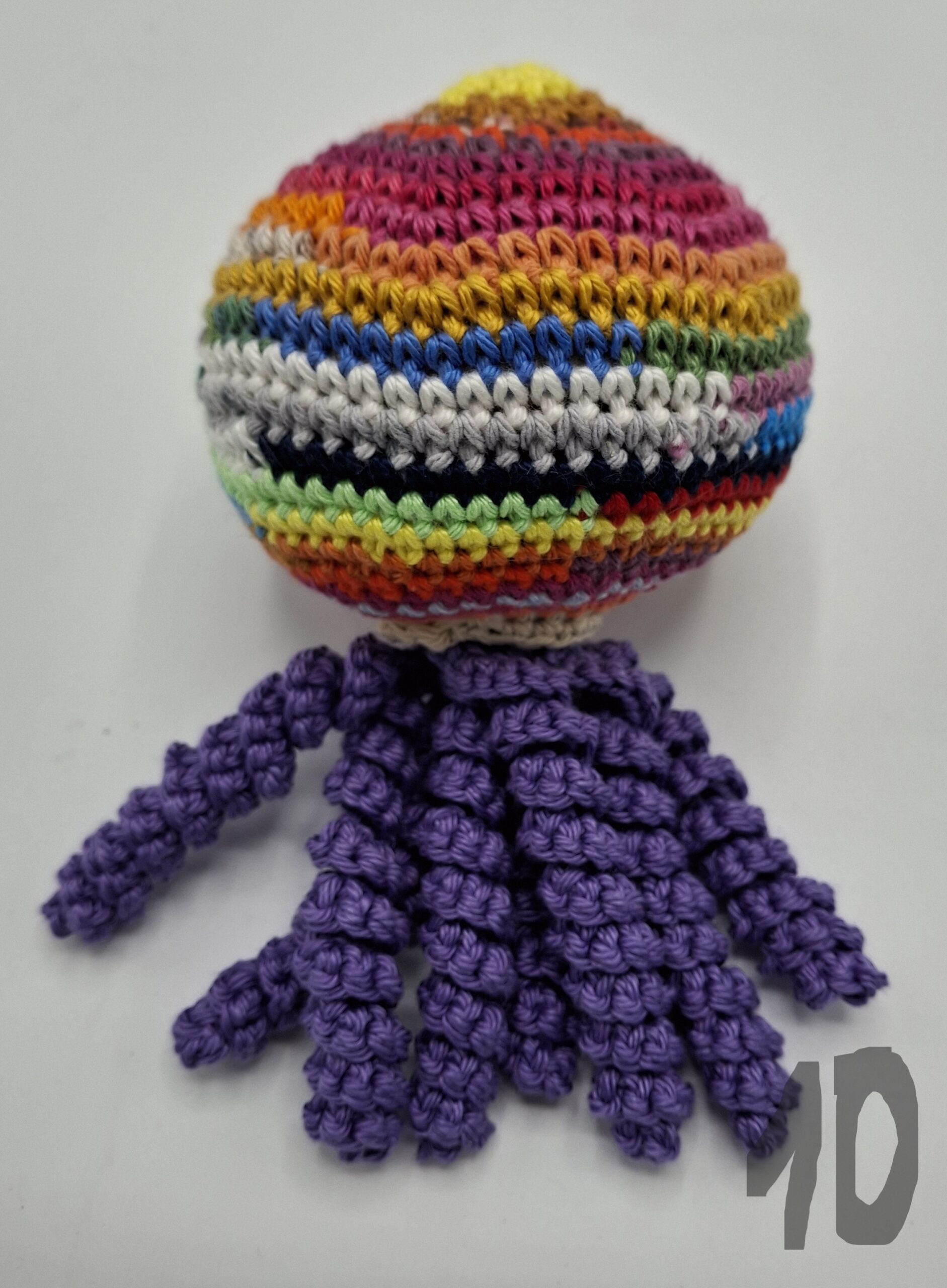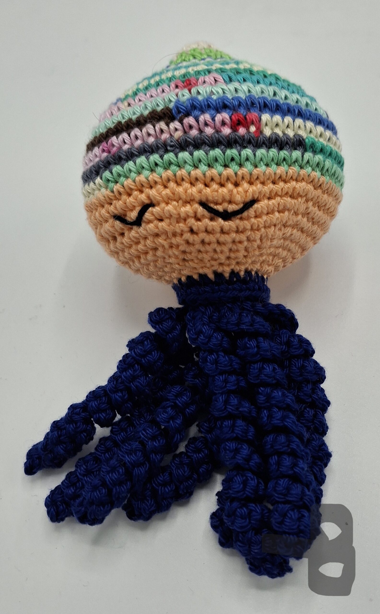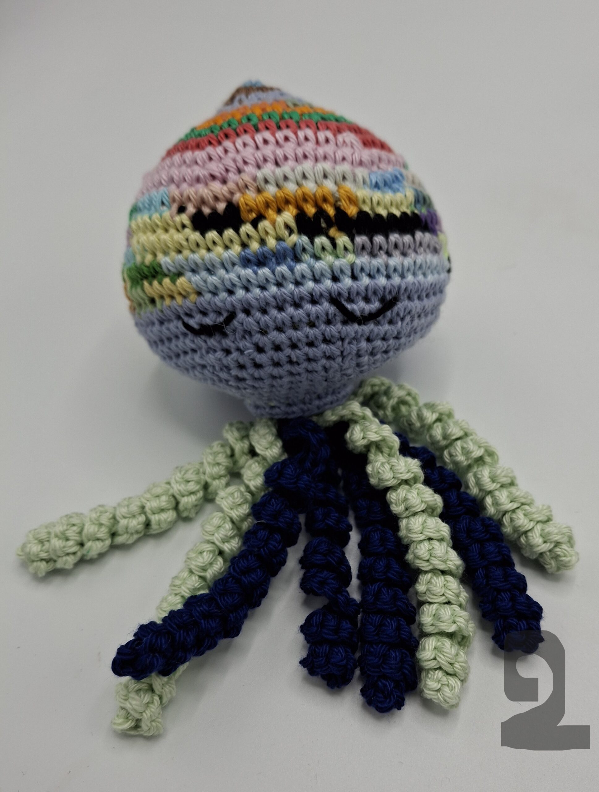 Deze knuffel is de grote broer/zus van de octopusjes die we maken voor couveusekindjes.