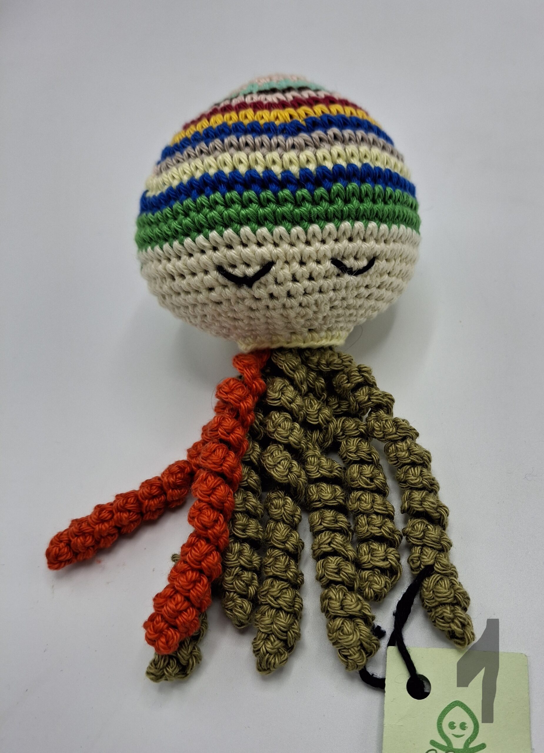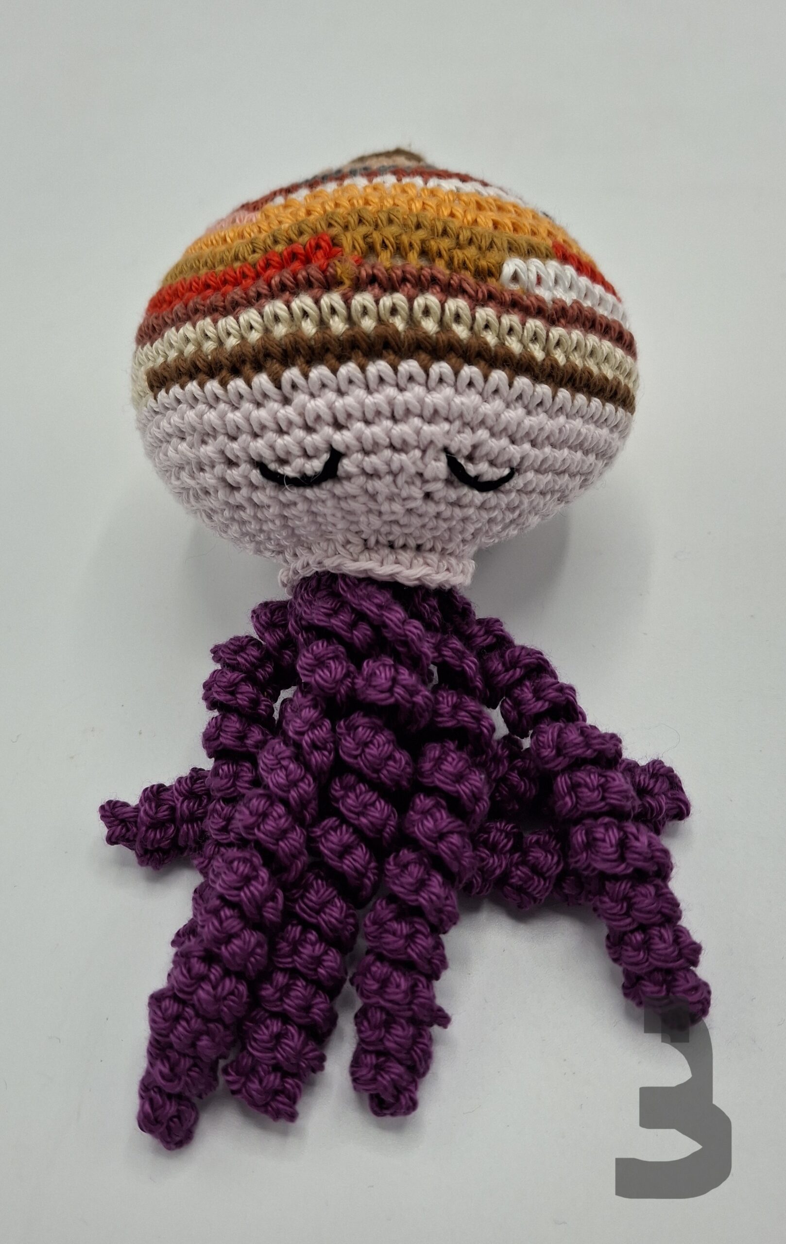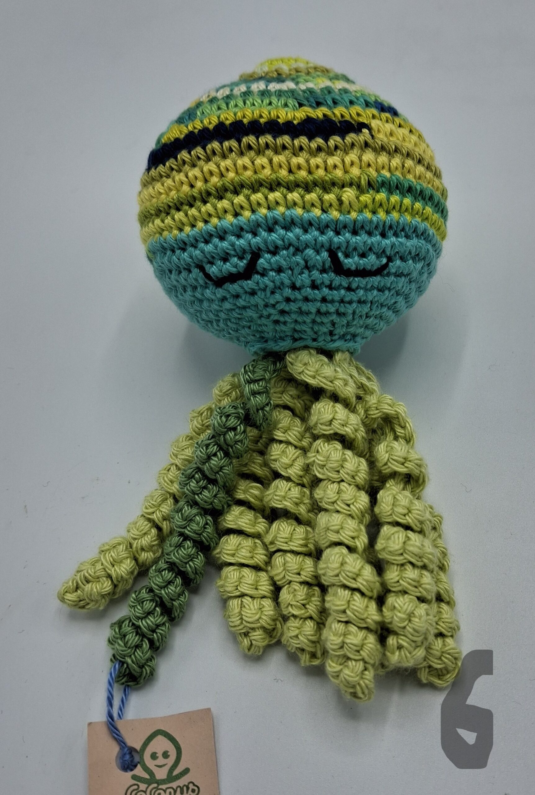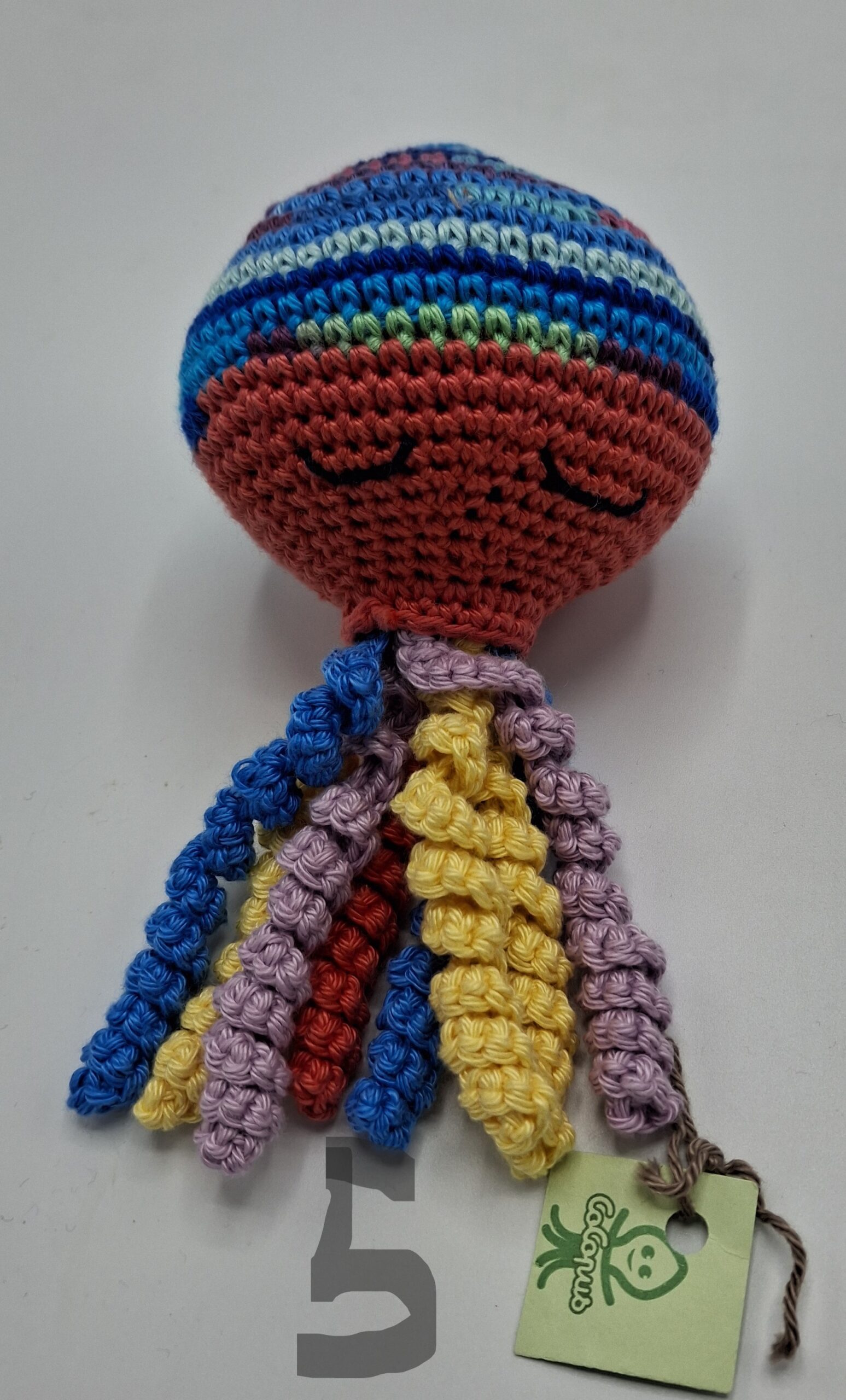 Deze knuffel is de grote broer/zus van de octopusjes die we maken voor couveusekindjes.
